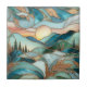Golden Mountain Peaks Forest Stained Glass Art Tile