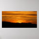 A brilliant golden sunset paints the cloudy sky orange and silhouettes the mountains outside of Ely, Nevada.