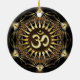 Golden OM Sanskrit symbol, customizable ceramic ornament in organic fractals geometric hexagon pattern. Makes a great personalized gift idea ~ keepsake gift ~ decorate and hang this positive happy energy ornament in your home, Yoga studio, bedroom, hang this ornament in your car, van or office!