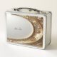 This is a standard metal lunchbox that appears to work just fine. We designed this box ourselves with an uploaded photo and custom text on the front and back. It looks absolutely beautiful except the front of the lunchbox is not centered like it shows in the photo. The print borders don't align with the inset flat part of the box where the preview photo online showed it perfectly centered in there. The back looks nice and centered though.