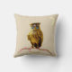 Golden Owl and Crescent Moon on Beige Throw Pillow