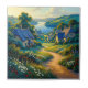 Golden Path to Blue Water is a luminous countryside landscape created as an homage to the radiant, idealized environments associated with Maxfield Parrish. A winding sunlit path draws the viewer through flowering gardens and sculpted cottages toward a serene expanse of cobalt-blue water, framed by rolling hills and glowing skies. Saturated colour, theatrical light, and carefully balanced composition create a scene that feels timeless and gently unreal, evoking a sense of calm, beauty, and mythic stillness without directly imitating Parrish’s work.