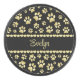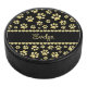 Golden Paw Prints on Black with Custom Name Hockey Puck