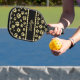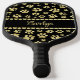 Golden Paw Prints on Black with Custom Name Pickleball Paddle