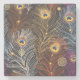 Golden peacock feathers: dark pattern. stone coaster