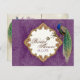 This elegant and sophisticated invitation has a rich and elegant vintage appeal. Created with a selection of Vintage art elements that have been compiled into a fresh new design by Audrey Jeanne Roberts. Spencerian calligraphy swirls give a beautiful and timeless quality to this delicate background. A pair of regal peacocks sit abreast a gilded carved golden frame. The background colour is complete customizable to match your wedding colours. I have used two colours in this invitation, but your front and reverse could also be the same colour - it's your choice! Every product shown can be created in any colour you wish. PAPER SELECTION: Shown here with Champagne Ice metallic. This paper is MAGNIFICENT, it has a soft, creamy pearl finish that gives incredible elegance to your presentation. This would also look excellent with the felt, linen, Ice metallic or other premium papers as well as the standard paper Zazzle prints on. YOU MIGHT ALSO ENJOY: WEDDING INVITATIONS: