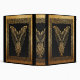 Radiating power and beauty, this shimmering Golden Phoenix design rises from the darkness with ornate elegance. Inspired by mythical rebirth and regality, the detailed feathers and dripping gold chains create a luxe, chandelier-like silhouette that commands attention. Set against a deep black background, this piece glows with sophistication and fiery symbolism.