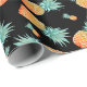 Golden Pineapple Pattern on Black | Tropical Fruit Wrapping Paper