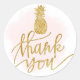 golden pineapple thank you on pink blot classic round sticker
