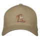 Fits well due to elastic edging, not adjustable. Good qualty material. Good quality embroidering. Subtle lettering (white on beige) just as my wife likes.