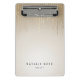 Chic clipboard features two lines of custom text in classic black lettering on a golden ombre background adorned with strands of faux gold foil string lights. Design repeats on reverse side. Please note that this clipboard is a mini size; full size version also available in our Blush Rain collection.