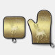 Beautiful Golden Reindeer Snowy Oven Mitt & Pot Holder Set