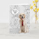 Golden retriever with speech bubble, striped necktie, and glasses on brick for 75th birthday.