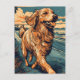 Golden Retriever at a tropical beach during sunset Postcard