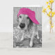 Golden retriever with pink baseball cap for humourous birthday.