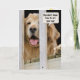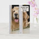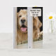 Golden Retriever dog peeking through wooden deck railing for getting older birthday humour.