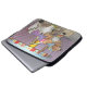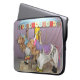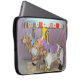This laptop sleeve features golden retrievers dressed as carousel horses on a carousel.