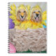 This notebook features golden retrievers dressed as chicks in a giant nest.