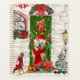 Golden Retriever Chien Noël assis à l'extérieur décoré maison avec la couronne de Noël, sapin de Noël est une idée cadeau de Noël parfait pour les amoureux de les chiens.