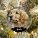 Un beau chiot Golden Retriever pose pour son premier Noël. Nom, année et photos sont facilement personnalisées. N'avez-vous pas de photo du nouveau Golden Retriever de votre être cher ? Ne vous inquiétez pas, les deux côtés de ce ornement sont déjà préparés avec de magnifiques photos pour donner.
