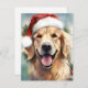 Colourful and joyful Christmas design with a Golden Retriever wearing a Santa hat.