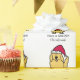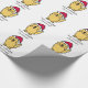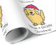 This holiday wrapping paper features a cartoon drawing of a golden retriever dog who is wearing a red Santa hat. Text reads, "Have a GOLDEN Christmas!"