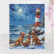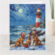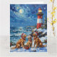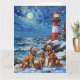 Bring friendly, gentle charm to your holiday season with this heartwarming Golden Retriever Christmas design! This magical scene features three cheerful, beloved Golden Retrievers (Goldens) sitting patiently at the base of a tall red-and-white lighthouse, which stands majestically on a snowy coastal cliff. The lighthouse is beautifully adorned with glowing Christmas lights and fragrant garlands. The dogs wear festive Santa hats and cozy scarves, surrounded by colorful wrapped gifts and cheerful holly branches. The ocean waves sparkle in the moonlight while soft snowflakes drift gently in the air, creating a truly magical winter holiday atmosphere. This design is a perfect Christmas gift for any Golden Retriever owner, dog lover, or admirer of festive and devoted sporting dog art, capturing the serene joy of the season.