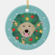 Golden Retriever Christmas Wreath Ceramic Ornament
