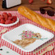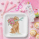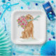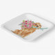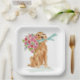 These paper plates feature an adorable watercolor portrait of a Golden Retriever holding a bouquet of pink flowers.