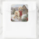 Golden Retriever Dog in Snow Christmas Square Sticker