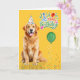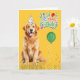 A fun birthday card for that Golden dog mom or doggy dad and this happy Golden Retriever is ready and wearing a party hat for the big birthday celebration.