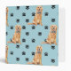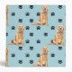 A beautiful Golden Retriever Dog wears a bow tie in the pattern on this binder. The dog images are placed on a black paw print and light blue background. The spine has a solid rectangle banner area for your own label. Perfect for anyone who has lost their heart to a Golden!