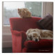 Golden retriever dog with ginger tabby cat tile