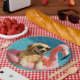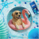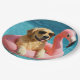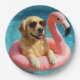 Golden Retriever Floating On a Flamingo Pool Toy Paper Plate
