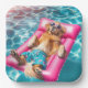 Golden Retriever Floating On Pool Mattress Paper Plate