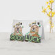 This card features golden retrievers wearing all the lucky symbols, which include a pot of gold, a rainbow, a leprechaun, a horseshoe and a shamrock. They are also holding signs saying Good Luck. The text reads, "Wishing you all the luck in the world this St. Patrick's Day!".