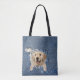 Golden Retriever in frayed blue denim hole Tote Bag
