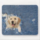golden retriever in frayed denim hole mouse pad
