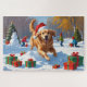 Golden Retriever in Snow with Christmas Hat Jigsaw Puzzle