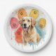 Golden Retriever in Watercolor Paw Print Paper Plate