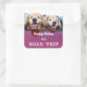 These stickers feature a photograph of two smiling golden retriever dogs with their heads looking out a car window, along with the text, "Keep Calm and Road Trip."