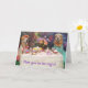 This Mother’s Day card features golden retrievers dressed in lace shirts and tulle skirts having a fancy tea party in the garden. The text reads, “Mom, you are tea-riffic!” and “Have a fantastic Mother’s Day!”.