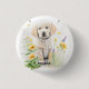 Golden Retriever Puppy and Florals Monogram Name 1 Inch Round Button
