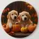 Golden Retriever Puppy Autumn Delight Pumpkin 6 Inch Round Button