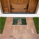 This door mat features a golden retriever puppy in lots of bubbles. The message reads, "Thanks for popping in!".