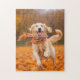 beautiful fall scenery puzzle with running golden retriever