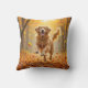 Golden Retriever Running In Autumn Woods Throw Pillow