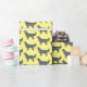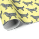 Golden Retriever silhouette yellow, blue and black grid lines abstract pattern. Perfect cute XMas dog paper for pet gifts for Golden Retriever Moms and Dads. The small silhouette dog allows the paper to be seamless on the yellow paper.