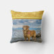 Golden Retriever standing on the blue ocean rocky Throw Pillow