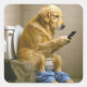 Golden Retriever Texting on a Toilet Square Sticker